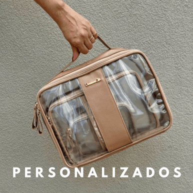 Kit 3 Necessaires em Couro Nude Vinil Transparente